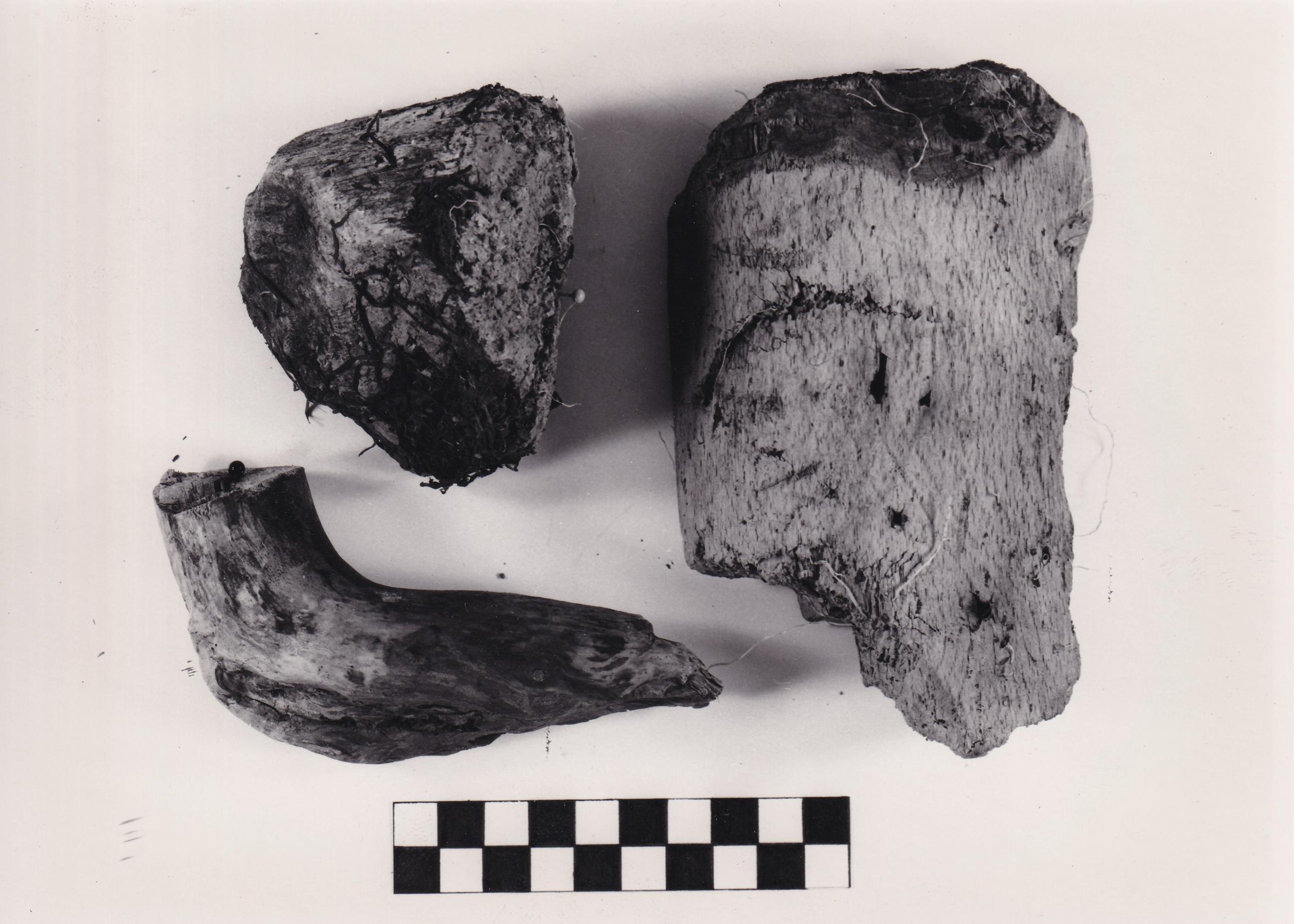 Fotodokumentation der BDA Restaurierungswerkstätten: drei Holzfragmente; Beschriftung: 1984; Q:11/U-2