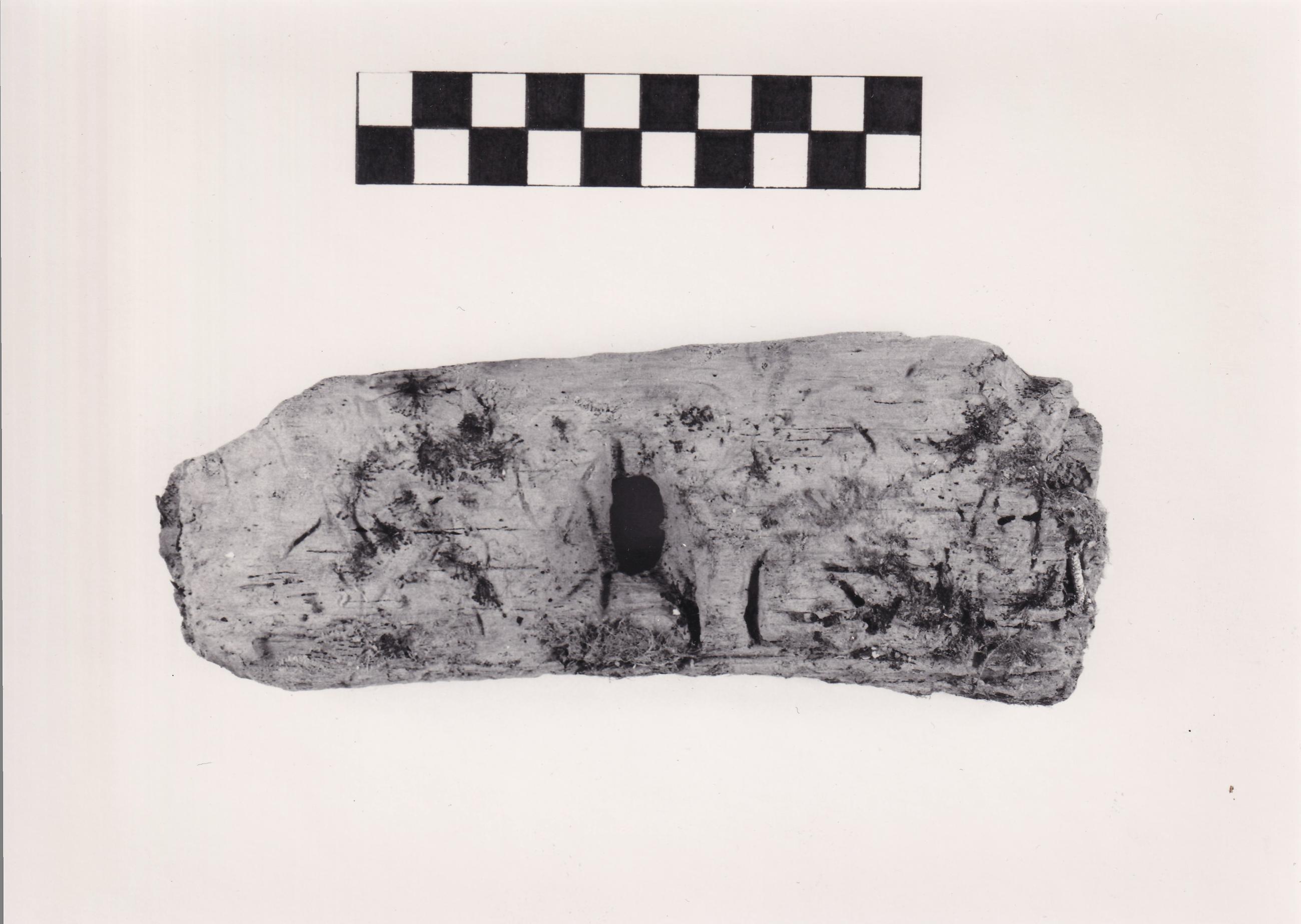 Fotodokumentation der BDA Restaurierungswerkstätten: Pfahlfragment im trockenen Zustand; Beschriftung: Q:13/M; Siehe auch ID: BDAMQ13_2