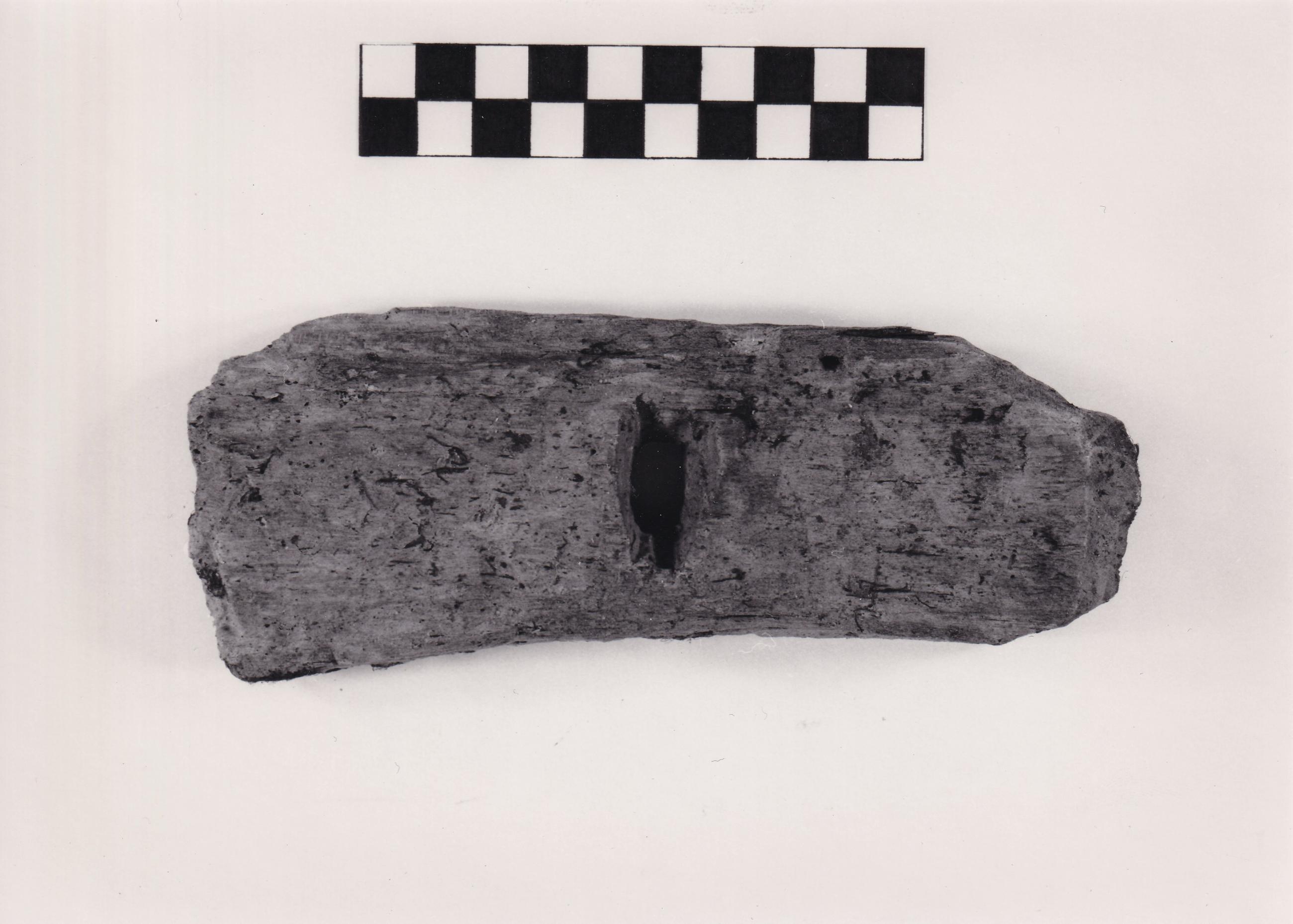 Fotodokumentation der BDA Restaurierungswerkstätten: Pfahlfragment im trockenen Zustand; Beschriftung: Q:13/M; Siehe auch ID: BDAMQ13_1