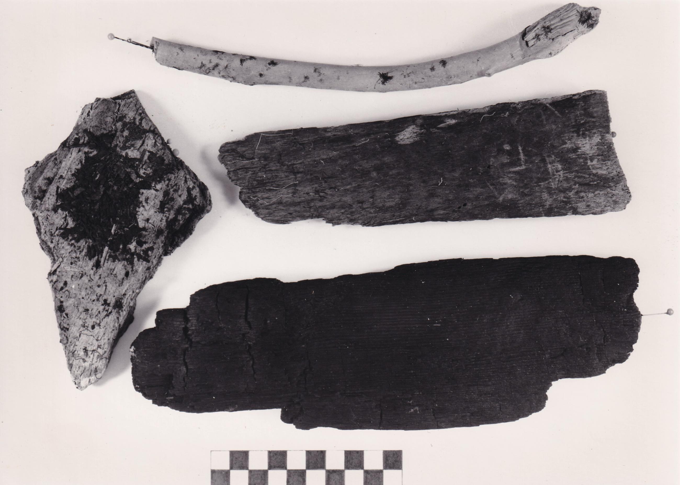 Fotodokumentation der BDA Restaurierungswerkstätten: vier Holzfragmente; Beschriftung 1984, Q17/F, Q18/J, Q:20/Q; Gra 6-7m. Siehe auch ID: BDAMQ1718201