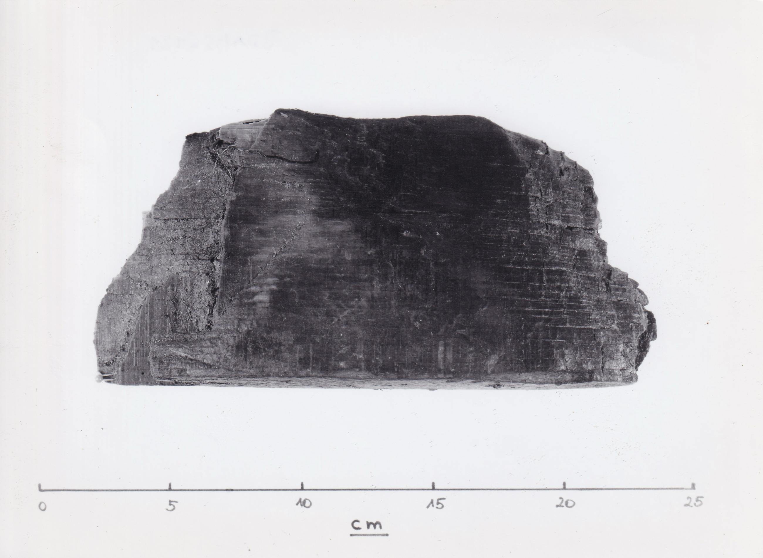 Fotodokumentation der BDA Restaurierungswerkstätten: Holzfragment mit Brandspuren im nassen Zustand; Inv. Nr. S-6121. Siehe auch ID: BDAMS6121n1, BDAMS6121t1, BDAMS6121t2