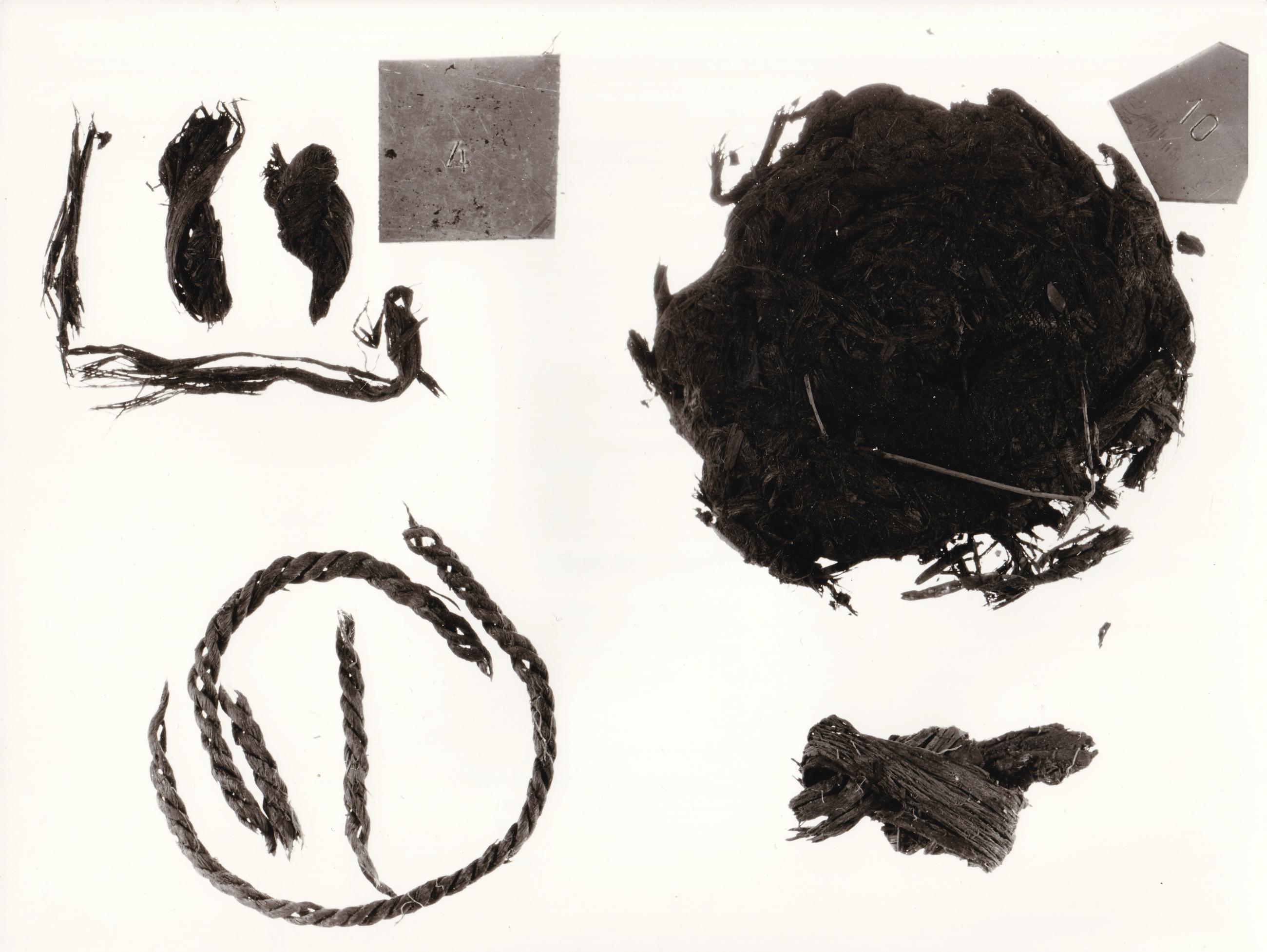 Fotodokumentation der BDA Restaurierungswerkstätten: Aufnahme von Textilresten; Kons.Nr.: 4 & 10