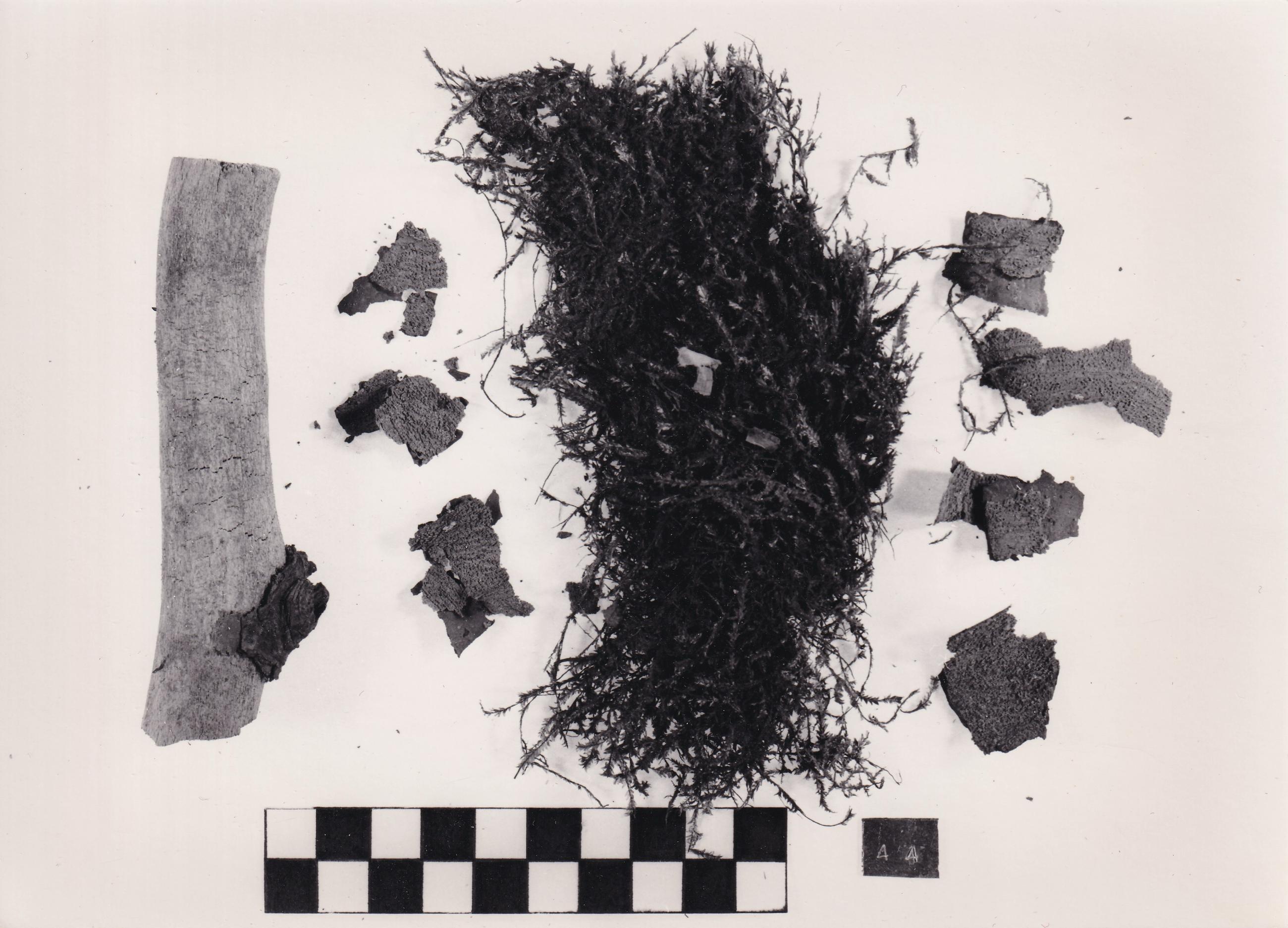 Fotodokumentation der BDA Restaurierungswerkstätten: Aufnahme von Pflanzenresten (Moos? & Holz); Kons.Nr.: 44