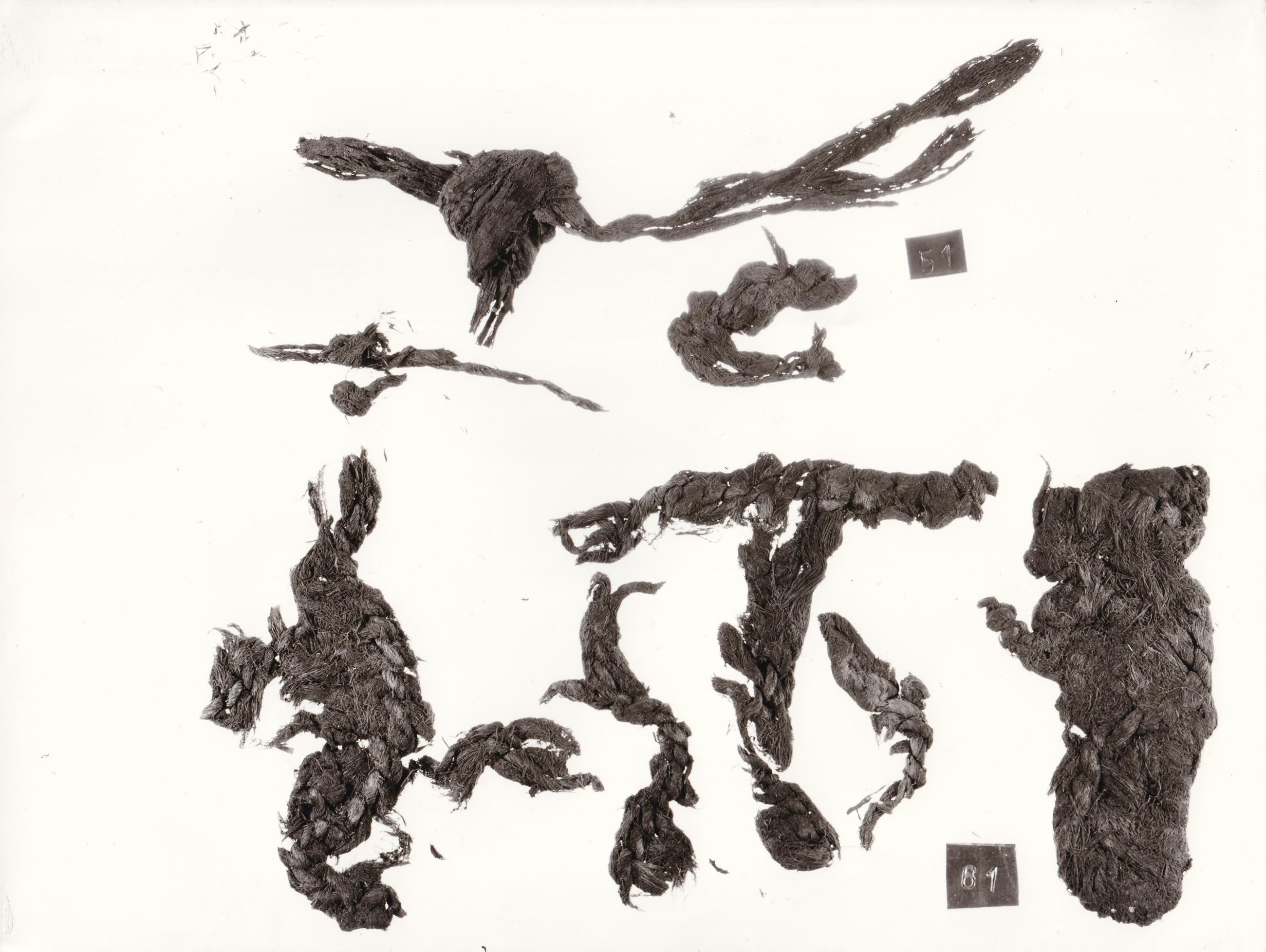 Fotodokumentation der BDA Restaurierungswerkstätten: Aufnahme von Textilresten; Kons.Nr.: 51 & 61