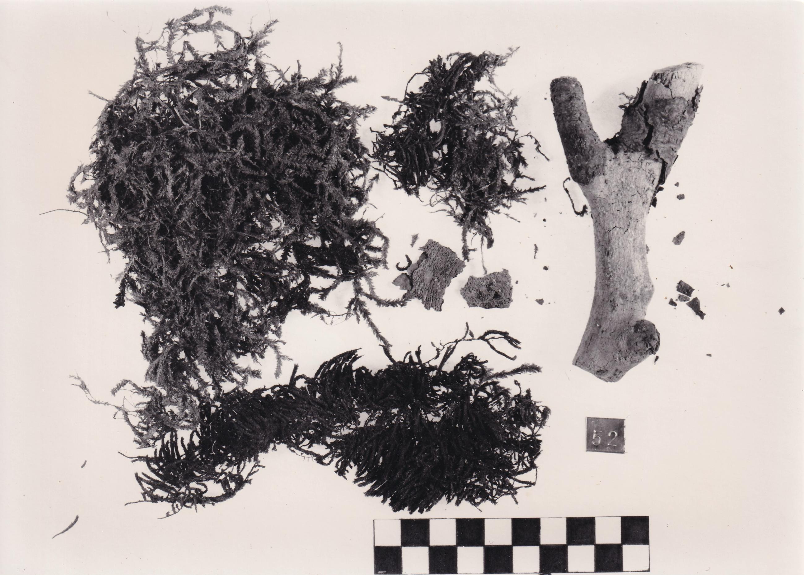 Fotodokumentation der BDA Restaurierungswerkstätten: Aufnahme von Pflanzenresten (Moos? & Holz); Kons.Nr.: 52