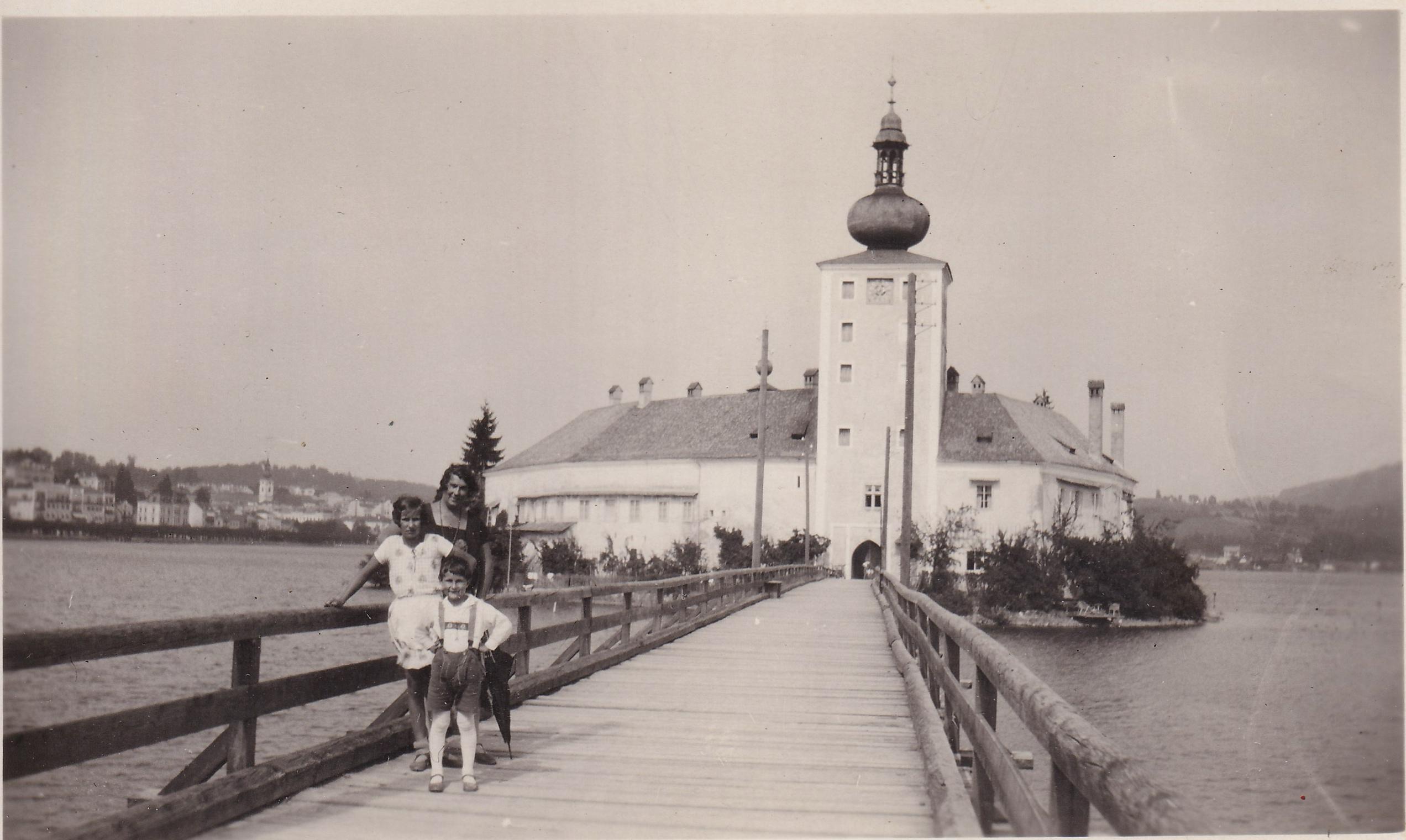 Foto von Kurt Schaefer mit Mutter und Schwester Edith in Gmunden am Traunsee, wahrscheinlich 1927