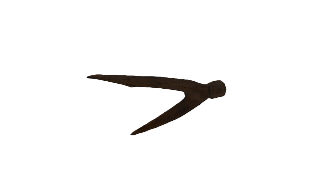Dieser hölzerne Angelhaken wurde vor vielen Jahren in einer Pfahlbausiedlung auf einer Insel im Keutschacher See zum Fangen großer Fische verwendet.